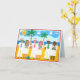 Les expositions folkloriques de Gloria Meer d'artiste trois ensembles d'heureux les épouse nouvellement de différentes origines ethniques. Ces jeunes mariés posent sur une plage avec un soleil et une eau et des palmiers de sourire à l'arrière-plan. À l'intérieur de la carte lit : Un bon mariage exige étant amoureux beaucoup de fois toujours avec la même personne.