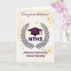 An elegant design featuring a graduation cap framed by a laurel wreath with purple and gold tones, accented by celebratory stars, created to honor induction into the National Technical Honor Society. The soft background wash adds a ceremonial touch, making this design perfect for recognizing achievement and dedication. One version features the full National Technical Honor Society wording, while another allows for personalization with a customizable name for a more personal keepsake.