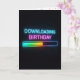 A bright neon computer loading bar in rainbow colors on a black background, indicating a download for a birthday celebration.