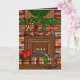 Cartes de Noël personnalisées. Modifiez le message à l'intérieur de la carte. Carte de vacances à thème country et western dessinée à la main avec des bottes de cowboy en carton suspendues à la cheminée au lieu de bas.