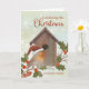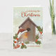 Vous avez déménagé dans une nouvelle maison cette année ? Faites-le savoir à vos amis et à votre famille avec cette carte de Noël avec un brasier festif dans un chapeau de Père Noël perché par sa maison d'oiseaux confortable, entourée de saints et de flocons de neige. Ajoutez votre nouvelle adresse à l'intérieur de la carte.