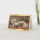 Le devant de cette carte de voeux de Noël présente une image vintage d'une petite fille jouant d'un xylophone à l'ancienne avec deux anges comme chorale. Dans l'arrière - plan se trouve le sapin de Noël familial. L'image est placée sur un arrière - plan de gradient d'or léger et infusé, et est bordée de rouge foncé avec une fine ligne d'or. Le dessus intérieur de la carte est assorti au rouge Vacances solide. Le bas est blanc, avec des champs de texte personnalisés pour votre propre message et signature. Célébrez Noël à l'ancienne avec cette belle carte qui présente une image d'autrefois.
