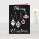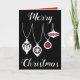 Une carte de Noël classe, la couverture de devant présente "Joyeux Noël" écrit en caractère cursif blanc sur un arrière - plan noir. Au milieu se trouvent des ornements blancs de Noël. À l'intérieur de la carte est un arrière - plan rouge avec un joli message qui peut être customisé. Graphique de Noël créé par : AMBillustrations http://www.etsy.com/shop/AMBillustrations/