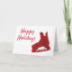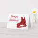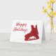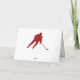 Envoyez vos meilleurs voeux aux joueurs et aux amateurs de hockey avec une carte de Noël de hockey sur glace. Conception avant : arrière - plan d'or avec patinage de hockey en rouge étincelant et "Happy Holidays" en rouge Conception arrière : joueur de hockey en rouge étincelant