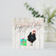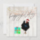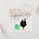Carte de voeux de Noël ou de Noël avec un poulet dans un chapeau de Père Noël et des cadeaux colorés. Modifiez facilement les informations pour vous-même. Un accueil de saison amusant et lumineux.