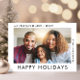 Carte de voeux pliée de Noël moderne qui présente votre photo sur le devant et "Joyeuses fêtes", "Que vos journées soient Joyeuses + Lumineuses" et votre nom en simple typographie. À l'intérieur, customisez votre salutation et ajoutez vos premiers noms.