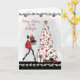 Carte de Noël moderne pour la filleule, représentant une dame élégante vêtue de rouge avec des talons hauts portant des cadeaux vers un joli sapin de Noël blanc décoré. Graphismes gracieusement offerts par Crave Designs.