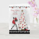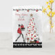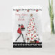 Carte de Noël moderne pour marraine, représentant une dame élégante vêtue de rouge avec des talons hauts portant des cadeaux vers un joli sapin de Noël blanc décoré. Graphismes gracieusement offerts par Crave Designs.