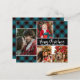 Budget, élégant, moderne Buffalo noir et Turquoise Plaid 4 Photo Collage Joyeux Noël Carte de vacances. Ce modèle festif de quatre (4) photo de carte de vacances présente un joli collage photo, noir et turquoise vert ou noir turquoise buffle plaid / chèque motif et dit Joyeux Noël! Le texte de salutation "Joyeux Noël" est écrit dans un beau type de police de typographie lettrée à la main. À l'inverse, on trouve également un motif de buffle. Cartes de fin de année pas chers.