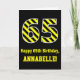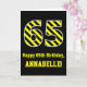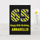 Carte Noir et jaune rayé "65"; 65e anniversaire + nom