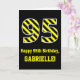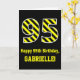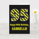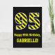 L'avant de cette carte de voeux audacieuse et amusante à thème d'anniversaire comporte un grand numéro "95" avec un motif à rayures noir et jaune, ainsi que le message "Happy 95th Birthday," et un nom personnalisé. L'arrière - plan du devant est noir de couleur. L'intérieur comporte un message de voeux d'anniversaire personnalisable, ou peut-être pourrait-il être effacé et laissé vide si un message doit être écrit à la main à la place. Une carte d'anniversaire personnalisée comme celle-ci pourrait être une façon amusante d'envoyer des voeux d'anniversaire à quelqu'un qui célèbre son quatre-vingt-quinzième anniversaire. [~Z0000382]