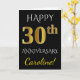Carte Noir, Faux Or 30e Anniversaire de Mariage + Nom