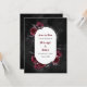 Dark and moody save the date card with Till Death Do Us Part (Till Death Do Us Part) dit, roses rouges foncées, chauves-souris et toiles d'araignée. A un arrière - plan d'aquarelle noir fumé. La typographie à lettre noire ajoute à l'atmosphère gothique de la faire-part. Voir aussi nos points de coordination.