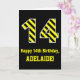 Le devant de cette carte de voeux à thème attirant l'attention et amusant anniversaire comprend un grand numéro "14" avec un motif rayé jaune et noir, ainsi que le message "Happy 14th Birthday," et un nom personnalisé. L'arrière - plan du devant est noir de couleur. L'intérieur comporte un message de voeux d'anniversaire personnalisable, ou peut-être pourrait-il être effacé et laissé vide si un message doit être écrit à la main à la place. Une carte d'anniversaire personnalisable comme celle-ci pourrait être une façon amusante d'envoyer des voeux d'anniversaire à quelqu'un qui célèbre son quatorzième anniversaire. [~Z0000382]