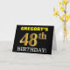 Ce design de carte de salutation d'anniversaire comporte un message comme "le quarante-huitième ANNIVERSAIRE de GREGORY ! ", avec "le quarante-huitième" ayant un faux/imitation or-comme l'aspect de couleur. Le nom du destinataire sur l'avant peut être customisé, et l'arrière - plan avant est coloré noir. Il comporte également un message personnalisé de salutation d'anniversaire sur l'intérieur. Une carte de voeux d'anniversaire comme ceci a pu peut-être être donnée à quelqu'un dans la célébration de leur huitième anniversaire quarante. [~Z0000183]