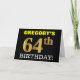 Ce design de carte de voeux d’anniversaire comporte un message comme "64e anniversaire de GREGORY!", avec le "64e" ayant une apparence de couleur fausse/imitation or. Le nom du destinataire sur le devant peut être customisé, et l’arrière - plan avant est de couleur noire. Il comporte également un message d'anniversaire personnalisé à l'intérieur. Une carte de voeux comme celle-ci pourrait peut-être être remise à quelqu'un pour célébrer son soixante-quatrième anniversaire. [~Z0000183]