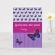 Un design de carte moderne que vous pouvez customiser avec votre propre texte et le nom du destinataire. Les couleurs sont roses, lilas et bleues, et il y a des papillons coordonnés et des motifs rayés sur l'avant. Tapez les cases pour modifier le message d'accueil sur le devant "Gratulerer med dagen" (Joyeux anniversaire) et le nom. Et changer le message à l'intérieur, ou utiliser le "Ønsker deg til lykke med fødselsdagen" fourni. A l'intérieur, un délicat motif de coeurs épars sur un arrière - plan rose pâle et un papillon supplémentaire.