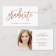 Personnalisez ces cartes élégantes et à la mode d'insertion d'obtention du diplôme avec votre photo personnelle, plus tous votre information de contact et liens sociaux de médias. L'avant de la carte comporte le mot "diplômé" dans la typographie rose d'or de faux moderne sur un arrière - plan blanc propre.