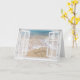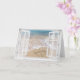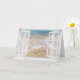 Fenêtre ouverte avec des rideaux de couleur blanche et prénoms de couple dans le sable de plage pour les jeunes mariés.