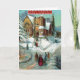 Une carte de Noël à l'ancienne avec une scène d'église pendant les Fêtes.