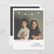 Une étoile blanche et une cloche dorée Christmas Streamer recouvre votre photo (comme dans votre photo) sur une carte instantanée de style photo. La photo a un filtre Zazzle pour un aspect vieilli et votre salutation de vacances personnalisée est dans une police manuscrite. Envoyez des voeux de vacances chaleureux avec cet élégant Modèle Instant Photo Christmas Card, conçu pour présenter votre propre photo de famille avec une touche nostalgique charmante. Doté d'un beau cadre photo instantané et d'un filtre vintage délicat superposé sur la guirlande et la zone photo, ce modèle personnalisable crée une carte de vacances intemporelle qui se démarque. Parfait pour les familles, les couples ou toute personne souhaitant ajouter une photo personnelle à ses voeux de Noël, cette carte combine des éléments de vacances classiques comme les étoiles et les cloches avec une palette de couleurs douces et muettes pour évoquer des souvenirs festifs. Ajoutez facilement votre photo de famille préférée et personnalisez le texte pour créer une carte de Noël unique et sincère que les amis et les proches chériront. Caractéristiques principales : modèle personnalisable pour télécharger votre photo de famille ou de vacances. Cadre photo instantané d'inspiration vintage avec effet filtre nostalgique et défraîchi. Elégante guirlande de vacances avec étoiles et cloches subtilement superposées avec des tons vintages. Un accueil "Joyeux Noël" écrit à la main ou votre propre message personnalisé. Modèle numérique de haute qualité idéal pour l'impression ou l'envoi numérique. Parfait pour des cartes photos de Noël personnalisées, des voeux de vacances en famille et des voeux de Noël saisonniers Créez votre propre carte de Noël mémorable avec ce modèle carte photo vintage personnalisé et partagez votre esprit de vacances dans un style intemporel!