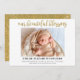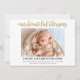Simple et élégant "Notre belle bénédiction" carte faire-part de naissance bébé. Belle écriture manuscrite et de style calligraphie en or/parties scintillant. 1 photo en orientation horizontale ou paysage. Remplacez la photo par votre nouveau-né. Unisex et élégant faire-part bébé.