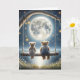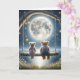Des nounours, garçons et filles, s'assoient sur une balançoire en bois, regardant une grande lune lumineuse sur un plan d'eau serein. Le texte peut être modifié.