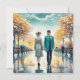 Jolie illustration aquarelle générée par intelligence artificielle. Un homme et une femme se croisant dans la rue en se frôlant la main. Une rencontre romantique par hasard. Jolie carte pour quelqu'un célébrant un anniversaire ou la Saint-Valentin après que le destin les ait réunis.