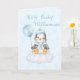 La nouvelle carte bébé comporte un arrière - plan bleu pâle avec un bébé pingouin flottant sur un nuage transportant un ballon. Cela ferait une carte merveilleuse à donner aux nouveaux parents pour célébrer la naissance de leur petit. La carte peut être personnalisée avec le nom du bébé ou le nom de famille sur le devant - Le message à l'intérieur peut également être modifié pour personnaliser la carte avec votre propre message de félicitations.