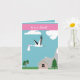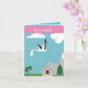 Cette jolie carte présente mon design traditionnel d'une cigogne volant à travers le ciel portant une petite fille avec un ruban rose. La carte est entièrement modifiable ce qui en fait le choix parfait.