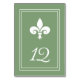 Elégante et simple carte de table Mariage avec une fleur de lis contre un arrière - plan vert mousse. Ce design est un choix unique pour un mariage moderne. Facile à customiser avec le ou les numéros de table appropriés. Cliquez sur "Customiser" pour trouver d'autres options de personnalisation.