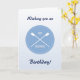 Un slogan humoristique "impressionnant" pour une carte d'anniversaire spéciale pour un rameur ou un sculpteur. Le texte est en majuscules, avec des lames croisées en blanc sur un badge bleu circulaire. À l'intérieur, l'accueil est personnalisable, ou vous pouvez utiliser le fourni "Avoir une g-huit jour et un rhume plein de plaisir!"