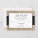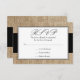 Élégant burlap et cartes de réponse RSVP mariage noir. LES DESIGNS SONT DES GRAPHIQUES IMPRIMÉES À PLAT — PAS DES BOURLAGES RÉELS.