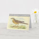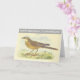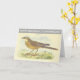 Cette conception présente une représentation d'un oiseau avec des plumes colorées de différentes nuances de marron, debout sur le sol. Il comporte également des messages personnalisables à l'avant et à l'intérieur.