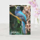 Un bel oiseau bleu avec de longues plumes de queue assise sur une branche.