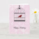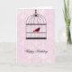 Oiseau dans une carte d'anniversaire vintage de style de damassé de rose de cage