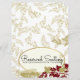 Jolies feuilles et oiseaux en dentelle, panneau de mariage réservé dans une forêt rustique en rouge foncé et or. Score à la main et pli pour la carte de tente.