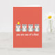 This greeting card shows four cute cartoon hamsters lined up on a coral background. Each hamster is soft gray with a white belly, and they hold their small pink paws up near their chest. Their faces look happy and friendly, with big dark eyes, tiny whiskers, and open smiles that show little pink tongues. The hamster on the far left wears a bright yellow party hat with a zigzag pattern and a red pom-pom on top, which makes it stand out from the others. Under the hamsters, the text reads “you are one of a kind” in rounded white letters. The message sits along the bottom area and feels simple, sweet, and personal. It’s a warm card for romance, friendship, or anyone you want to make feel special ❤️💌🍫. Hope it helps you share your Valentine’s Day feelings with someone you care about.