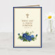 Célébrez l'Anniversaire de la Prêtrise avec cette belle image catholique traditionnelle d'un Crucifix en or avec des roses bleus et verset des écritures. Sur le côté gauche de la carte se trouve le poème de Jean-Baptiste Henri Lacordaire, O.P. (1802-1861) Vivre au milieu du monde sans désir pour ses plaisirs, être membre de chaque famille, mais n'appartenant à personne, partager toutes les souffrances, pénétrer tous les secrets, guérir toutes les plaies, aller tous les jours des hommes à Dieu pour Lui offrir leur hommage et leurs pétitions; pour revenir de Dieu aux hommes pour leur apporter Sa grâce et son espérance; pour avoir un coeur de feu pour la charité et un coeur de bronze pour la chasteté; pour bénir et pour être béni pour toujours. Ô Dieu, quelle vie, et elle est à toi, ô Prêtre de Jésus-Christ ! Tout le texte et les polices du côté droit de la carte peuvent être modifiés.