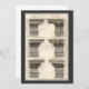 Illustrations vintages d'éléments architecturaux anciens, d'entablatures. L'entablement se compose de trois couches horizontales, toutes séparées visuellement les unes des autres à l'aide de moulures ou de bandes. Les trois couches de l'entablature ont des noms distincts : l'architrave vient au fond, la frise est au milieu et la corniche moulée se trouve sur le dessus. Dans les oeuvres romaines et post-Renaissance, l'entablement peut être transporté de colonne en colonne sous forme d'arc qui provient de la colonne qui porte son poids, conservant ses divisions et l'enrichissement sculptural, le cas échéant. Il n'y a que trois ordres d'architecture anciens et originaux, le dorique, l'ionique et le corinthien, qui ont été inventés par les Grecs. A ceux-ci les Romains ajoutèrent la Toscane, qu'ils rendaient plus simple que le Dorique, et le Composite, qui était plus ornemental que le Corinthien.