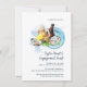 Envoyez votre invitation pour la fête du toast à l'huître d'été et la fête du toast Fiançailles avec notre modèle d'invitation en cliquant sur le bouton "Personnaliser". Comprend différents types d'illustrations de coquillages, une planche à découper, de la bière et une texture d'aquarelle bleu clair. Parfait pour les fêtes de fiançailles à thème tropical, d'été ou nautique.