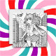Carte de coloriage pour enfants, ados ou adultes. Un super-héros féminin volant à travers le ciel de la ville entre les bâtiments et les gratte-ciel. Idéal pour les cours, les enseignants, les garderies, les écoles maternelles ou les jeux de fête d'anniversaire.