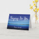 Carte de soutien chrétien aux eaux paisibles et calmes PRIANT POUR VOUS. Le design montre une image d'eaux calmes, avec le titre principal indiquant PRIANT POUR VOUS et PAIX, RESTEZ TRANQUILLE en bas. Tout le texte est PERSONNALISABLE, vous pouvez donc personnaliser le recto et créer votre propre message à l'intérieur et ajouter votre/vos nom(s). Choisissez parmi une large sélection de cartes et de cadeaux chrétiens conçus par Berean Designs.