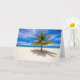 Cette photo montre un palmier debout sur une plage de sable blanc.
