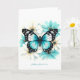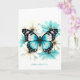 Un magnifique papillon bleu détaillé repose parmi des fleurs aquarelles douces aqua et blanches sur cette élégante carte de vœux sur le thème de la nature. Parfaite pour les anniversaires, les remerciements ou les messages d'encouragement.