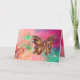 Carte PAPILLON EN PAILLETTES D'OR ,Rose Vert sarcelle