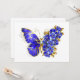 Bijoux, bleu, saphir, papillon aux fleurs pétillantes avec aile décorée de bleu, fleurs précieuses avec feuilles d'or sur arrière - plan blanc.