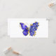 Bijoux, bleu, saphir, papillon aux fleurs pétillantes avec aile décorée de bleu, fleurs précieuses avec feuilles d'or sur arrière - plan blanc.