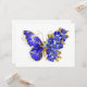 Bijoux, bleu, saphir, papillon aux fleurs pétillantes avec aile décorée de bleu, fleurs précieuses avec feuilles d'or sur arrière - plan blanc.