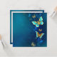 Or volant, papillon bijoux sur arrière - plan textuel bleu. Conception avec papillons.